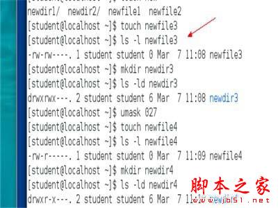 第六然后touch命令創建文件newfile1。再檢查文件的權限信息。