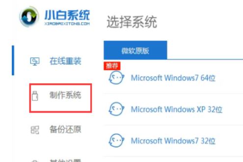 1,首先,將u盤插入電腦的USB接口處,然后雙擊打開小白一鍵重裝軟件,將界面切換到“制作系統(tǒng)”選項卡中。