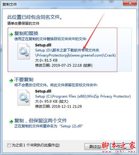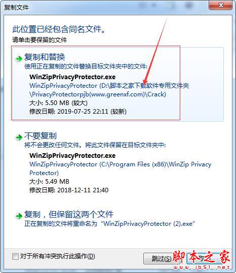 3、將壓縮包里Crack方件夾里的兩個文件得到粘貼到軟件安裝目錄(默認C:Program Files(x86)/WinZip Privacy Protector)
