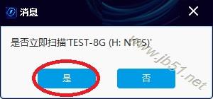 4、彈出對話框,提示“是否掃描TEST-8G(H:NTFS)”,點“是”,軟件掃描H分區(qū)數(shù)據(jù)。