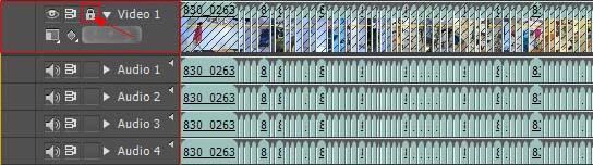 5、按住鍵盤上的Backspac或者Delete按鍵,解開視頻軌道的鎖住按鈕,就可以開始編輯視頻了,也可以拖入自己喜歡的聲音。