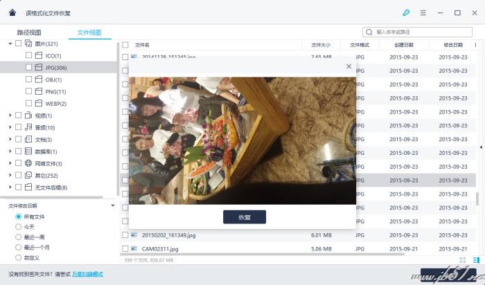 掃描過后,會有成堆的文件展示在你眼前。當然,不會讓你一份份打開、查看并恢復的,這多費事啊。你可以根據(jù)路徑視圖或文件視圖進行篩選和預覽,再點擊“恢復”按鈕,復原相中的文件。