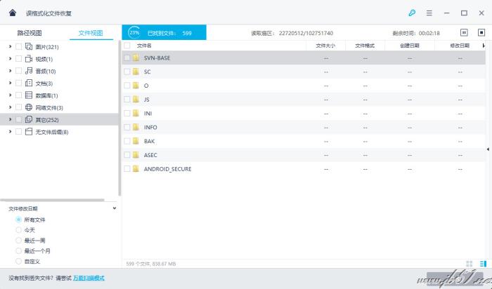接著,你丟失的文件基本都會被快速掃描出來,就一會會的事。當然,有可能你還是找不到想要的文件,那么試試“萬能掃描模式”吧,不會讓你失望的。