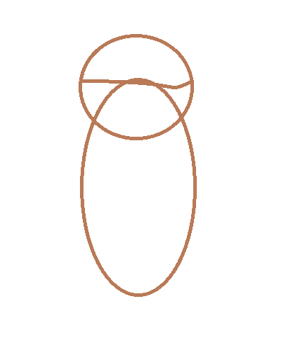 3、同樣選擇圓形工具,畫(huà)一個(gè)橢圓,作為機(jī)器人寶寶的身體。橢圓的對(duì)稱線和腦袋的對(duì)稱線在一條直線上。
