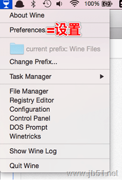 3、雙擊打開“Wine”,打開后我們可以在電腦右上角的系統菜單欄找到一個酒杯的圖標(即Wine的圖標)。