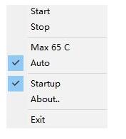 以管理員身份運(yùn)行ideafan.exe,會(huì)在托盤區(qū)顯示兩個(gè)圖標(biāo),分別為ideafan.exe以及OpenHardwareMonitor.exe,其中ideafan.exe為我們的主程序,用來設(shè)置啟用/關(guān)閉強(qiáng)冷,設(shè)置開機(jī)自啟動(dòng),設(shè)置溫度限制,OpenHardwareMonitor.exe則是一個(gè)硬件溫度檢測(cè)工具,ideafan.exe通過它的硬件溫度數(shù)據(jù)決定否開啟強(qiáng)冷。
