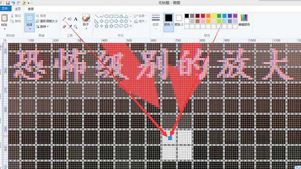 6、如果你對剛才的精度(放大的級別)還不滿意,那么請在剛才最后一步的基礎上,按一下鍵盤上的“PrtSc",printscreen這個鍵是復制整個屏幕的意思。當你再次在畫圖里粘貼(ctrl+v)的時候,你會發現剛才的4個白色小方格貌似又放大了50倍!如圖