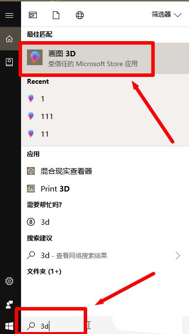 2、在windows 10 右下角搜索欄輸入3d可以搜索到win 10 自帶的3d畫圖軟件