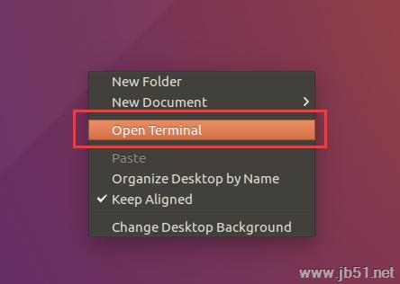 2、在Ubuntu空白窗口中右擊,在出現的下拉列表中選擇“Open Terminal”,然后將之前復制的指令粘貼進去,在點擊回車鍵之后輸入相關密碼,然后運行,運行成功之后關閉終端;