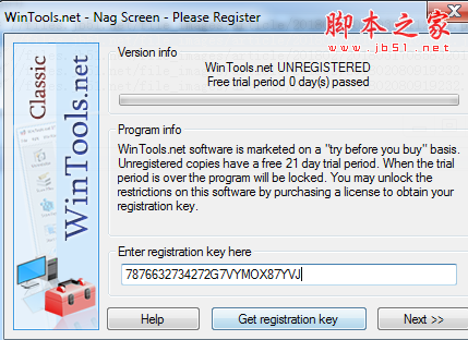 WinTools.net Classic是一款功能強大的系統優化組合軟件,可以從系統中移除不需要的軟件、清除無用的登錄文件、控制開機時所要自動開啟的程序、內存監控、桌面自訂...等等功能,本文為大家帶來的是該軟件和安裝和使用序列號激活的過程,需要的朋友就隨小編一起去看吧!