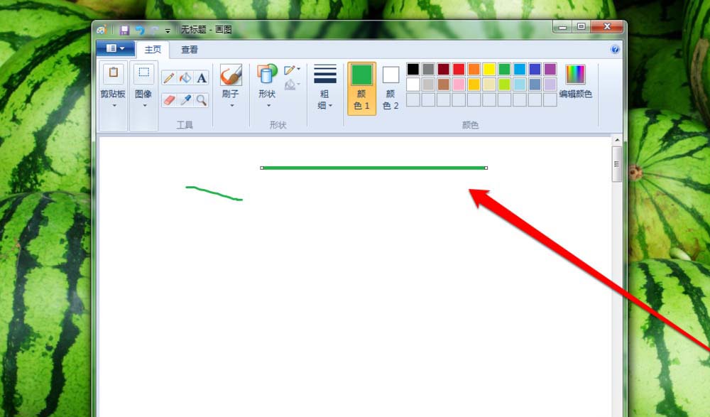 9、重新選擇顏色后,畫在畫圖的畫布上,就完成了畫圖的刷子的使用。