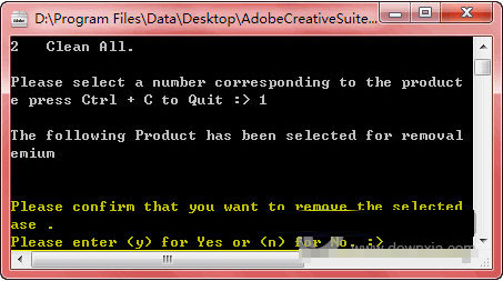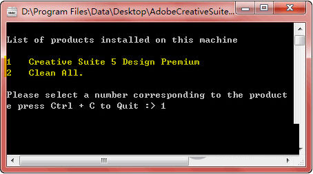 選擇一種卸載模式后,Adobe CS5 Cleaner Tool會分析出所有可卸載的程序,如我這里,分析的是Creative Suite 5 Design Premium,如果確定要卸載的話,輸入產品前面對應的數字序號(注意不是軟件序列號),即輸入數字1、并按回車繼續。