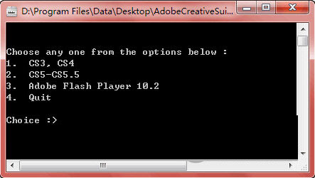 這里要選擇你需要的卸載模式,如果卸載Adobe CS3/CS4的軟件,則輸入數字1,然后回車;要卸載Adobe CS5/CS5.5,則輸入數字2并回車,要卸載Adobe Flash Player,則輸入數字3并回車。