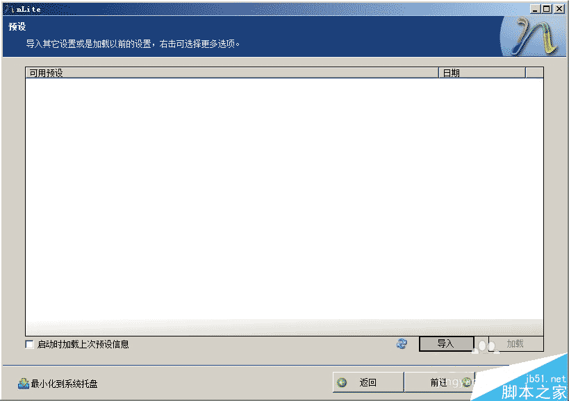 nlite有記憶功能,你以前用過的話,會記住上次的信息,也有導入功能,如果你以前在別的電腦上用過NLITE的話,可以把配置文件導入使用,以簡單你的重復工作。如圖,第一次使用,直接前進就行