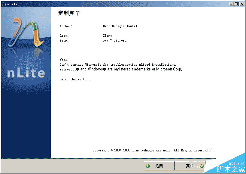 nlite現在最新版本是1.5,已經可以很好的支持Win XPSP2和2003SP1與win7等,1.4只支持xp,2003了,如果更高的版本可以到這里下載。它的使用很簡單,只要選擇好要移除的組件和服務,剩下的事情就可以交Nlite去做了。制作的關鍵是對每個組件和服務能有比較清楚的認識!特別是服務,有些服務移除之后可能會造成一些不可預知的問題,比如某些軟件不能安裝或者運行。