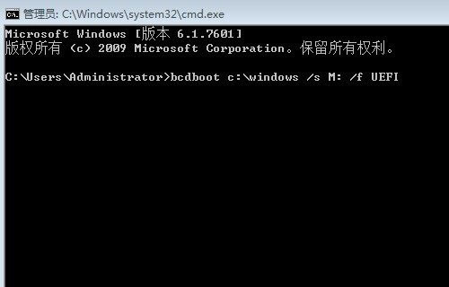 bcdboot c:/windows /s M: /f UEFI 如下圖: