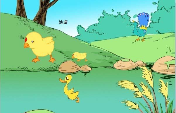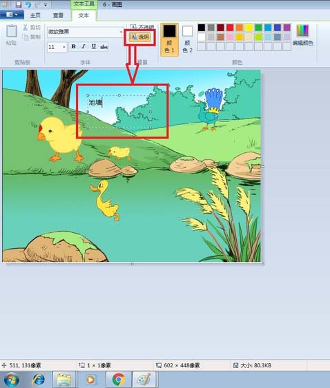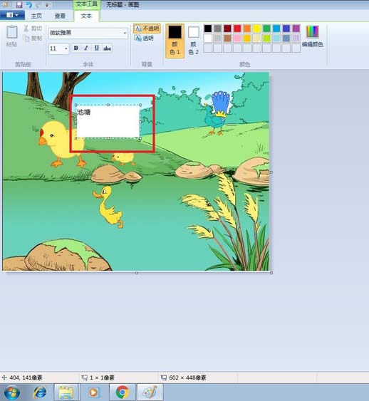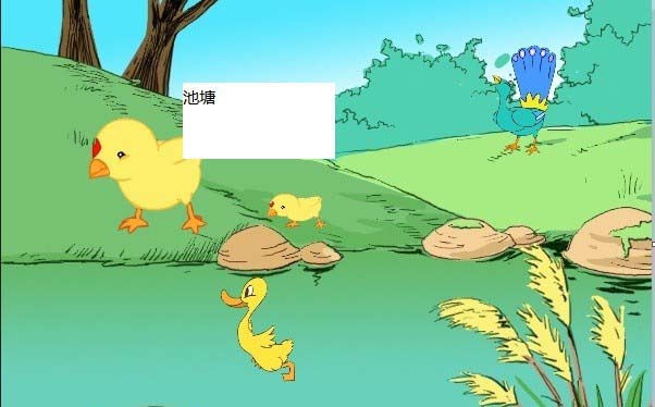 5、發現輸入的文字池塘將下面的畫遮住了,很不協調。