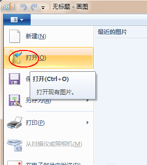 2、點擊“畫圖”工具左上角的倒三角-點擊“打開”。