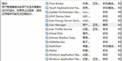 點擊“打開服務(wù)”后,找到UserMananer,按右鍵,點擊“屬性”命令。