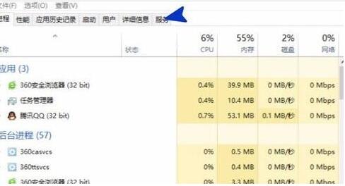 點擊任務(wù)管理器會出現(xiàn)另一個界面,點擊標(biāo)題欄的服務(wù)。