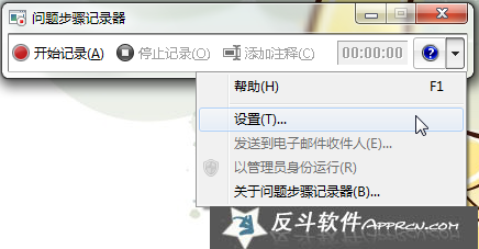 運行問題步驟記錄器后首先要設置一下,點擊右邊的下拉菜單,進入設置窗口。