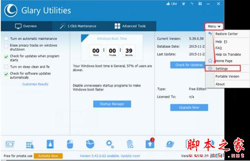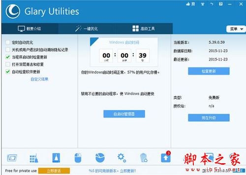 首先將下載安裝好的Glary Utilities雙擊打開,主界面如下