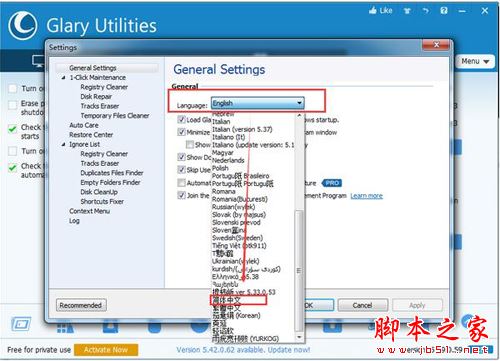 這樣子glary utilities中文就設(shè)置好了