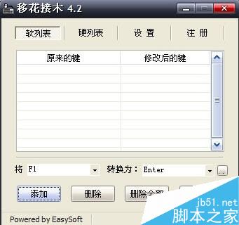 實例:把F1鍵設置回車鍵,在左側的輸入框按下F1鍵,在右側的輸入框按下回車鍵。