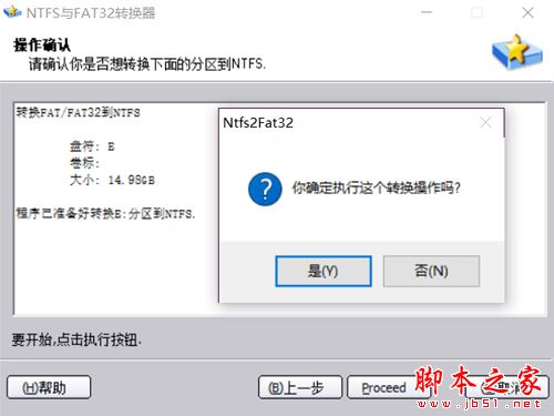 確認無誤后,點擊“Proceed”執行。這時候要特別留意,如果你選擇了磁盤,這是最后一次“后悔”的機會,選擇“是”進行轉換。