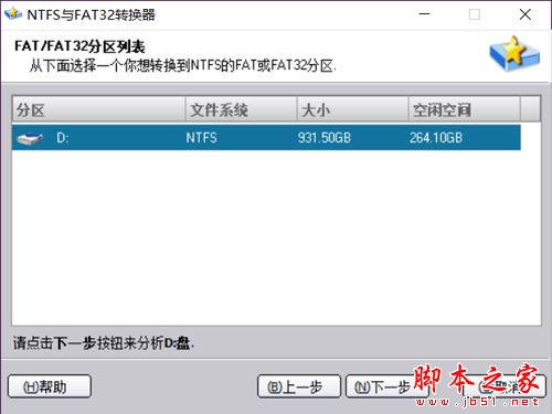 在下一個界面中,選擇具體要執行格式轉換的磁盤分區,此時如果文件很多,會有一個掃描過程。