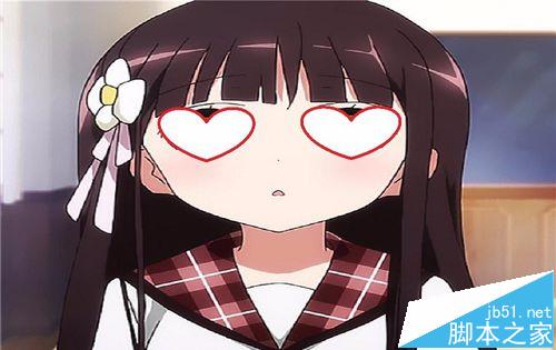 4、用鼠標在女孩的兩只眼睛上分別畫上心形,如圖所示,畫筆顏色選為紅色。