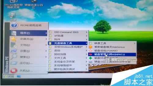 1分鐘左右的時間,WINPE桌面已經顯示,點擊開始菜單,程序,光盤磁盤工具,選擇磁盤管理大師WINPM7.0