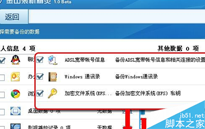 4、使用金山衛士重裝系統不僅簡單,而且還能備份數據。看看都有啥需要備份的。
