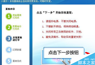 5、備份好數據后,就正式進入重裝系統的過程了,這個時候不需要人工干預,只要注意不要斷開電源與網絡就OK了。