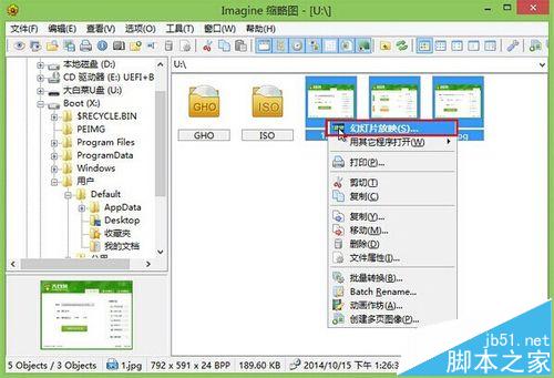 3、點(diǎn)擊打開你所存放圖片的文件夾,全選你所需要播放的圖片,右鍵選擇“幻燈片放映(S)...”進(jìn)入下一步操作。如下圖所示