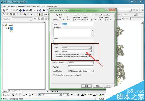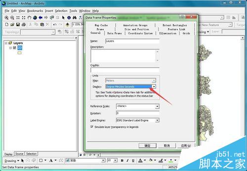 一般設置好的地圖投影應用到地圖上之后,地圖的顯示方式默認為米(Meters)。如何將米改為經緯度顯示呢?