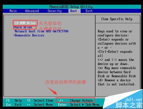 1、重啟電腦,進入BIOS,選擇首先從光驅啟動。保存設置然后退出,選擇YES重啟電腦。不同的BIOS版本,設置稍有不同,但都有BOOT啟動頁面。