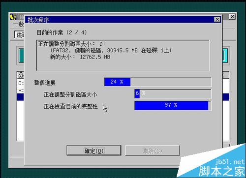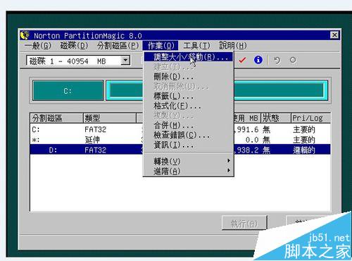 6、調整已經分派好的磁盤。選擇要調整才磁盤,點擊菜單欄“作業”——〉調整大小/移動,在需要調整的盤符上挪動鼠標,知道滿意為止。