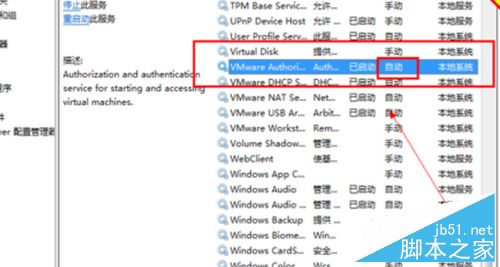 6、找到vmware服務“VMware Authorization Service ,并將其設置為自動啟動并開啟。