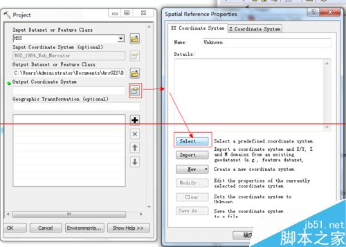 3、在打開的Project窗口中,選擇輸出的空間坐標(biāo)系統(tǒng),然后,點(diǎn)擊“Select”,如下圖所示:
