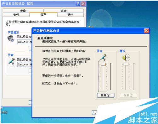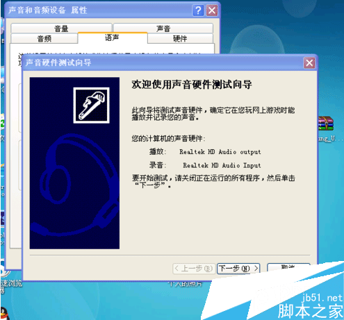2:找到語聲 ,有一個錄音下面有測試硬件 如圖
