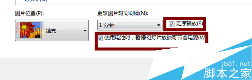 6:勾上“無序播放”和“使用電池時停止播放”點擊保存,這樣電腦的桌面就自動更換了