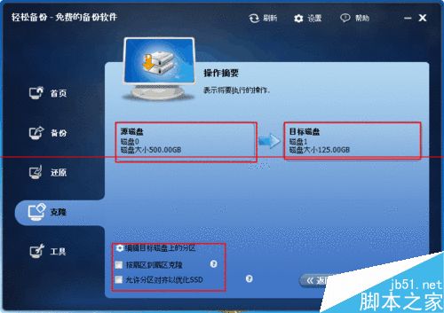 4、大小不一樣硬盤對拷時,注意下圖畫橫線選項:你可根據自己的情況做相應調整。之后點擊“開始克隆”