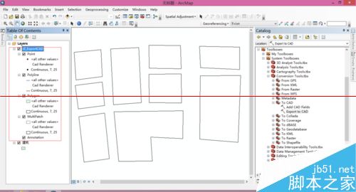 5、還可以使用ToolBoxes工具箱中的轉化工具(ConverSion Tools)——轉化為CAD(To CAD)——導出到CAD(Export to CAD)直接打開轉化對話框。