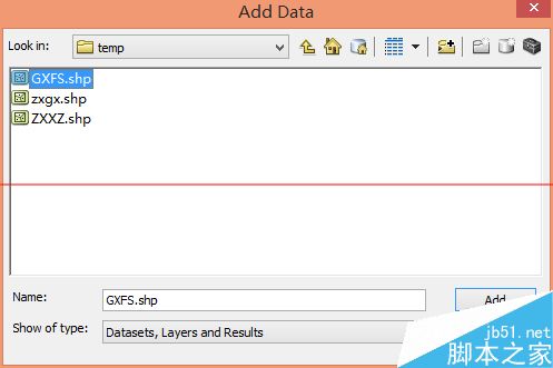 2、添加shp數據,瀏覽到shp文件存放位置打開;