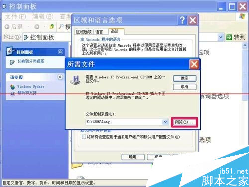 4,如果在設置“中文(中國)”區域語言時,彈出窗口,提示“插入磁盤”,這可能是“中文(中國)”語言字庫損壞,必須修復安裝。