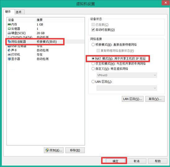 4.如果你沒有設置過,默認的是NAT,點擊確定即可。
