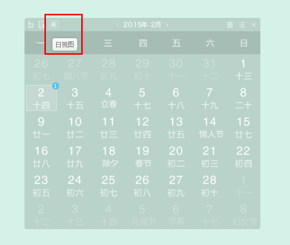 3、如果大家不喜歡這個形式的日歷我們點擊“月”可以顯示月視圖它就成這個樣子了,點擊“日”視圖它也可以變回來
