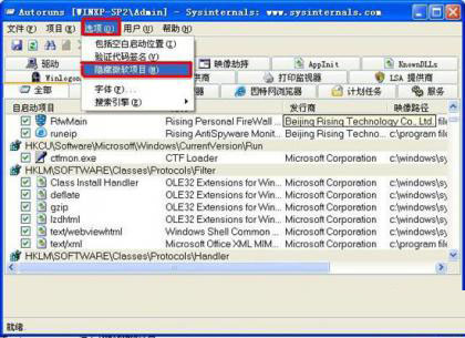 (三)“驗證代碼簽名”、“隱藏微軟項目”這兩個功能,使得判斷某個自啟動子項和自啟動值項是否是惡意軟件更加簡單,否則項目太多(一般有200多個),會看著發暈的。