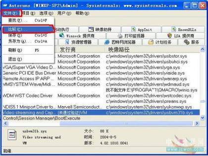 如果以前在機器正常時保存了AUTORUNS的日志,而當前感覺機器明顯有問題,可以通過以下辦法簡單確認惡意軟件可能添加的自啟動項: